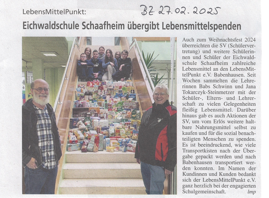 Eichwaldschule übergibt Lebensmittelspenden - Babenhäuser Zeitung
