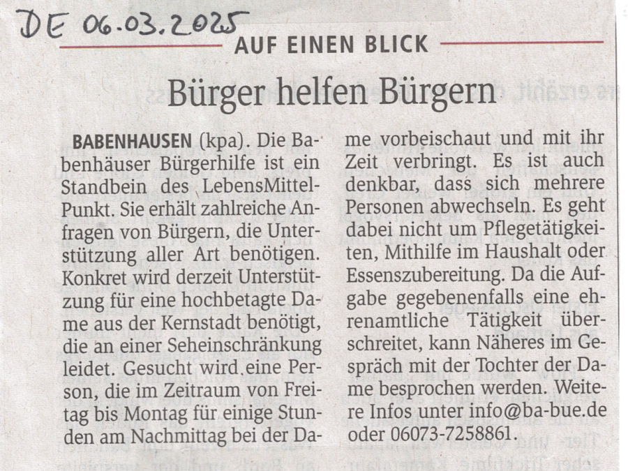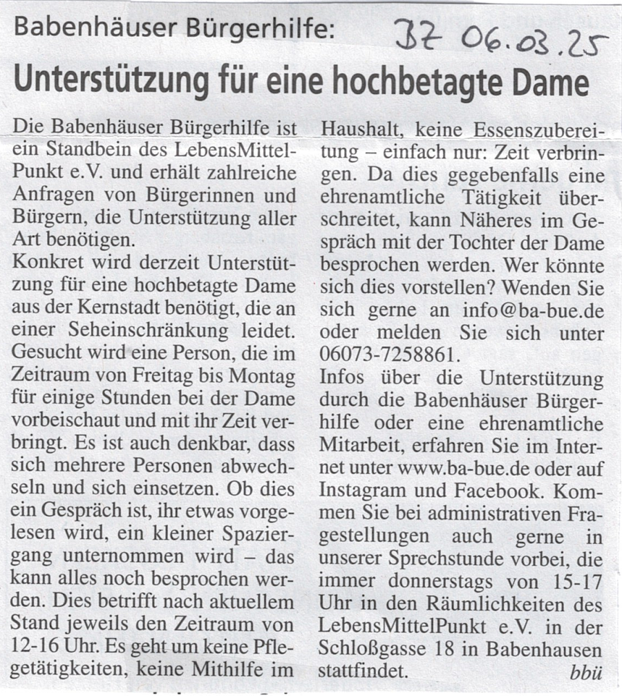 Unterstützung für hochbetagte Dame - Babenhäuser Zeitung