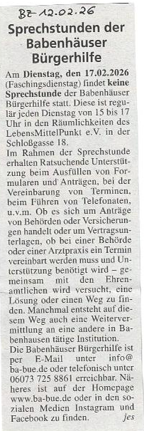 Babenhäuser Bürgerhilfe in der Babenhäuser Zeitung